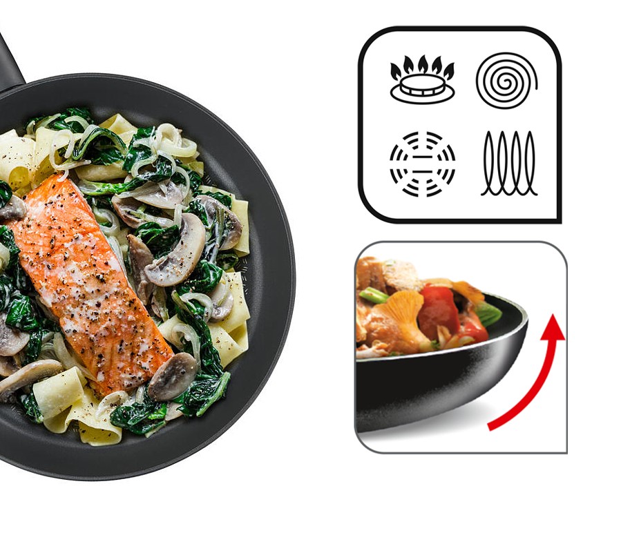 - Thích hợp cho tất cả các loại bếp, kể cả cảm ứng. Chất lượng tốt nhất cho kết quả chiên hoàn hảo