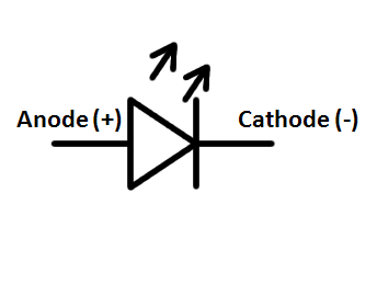 Biểu tượng thể hiện điốt với cực âm, cực dương và hai mũi tên thể hiện sự phát sáng.
